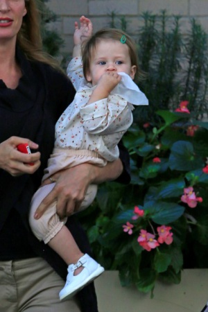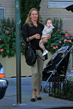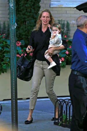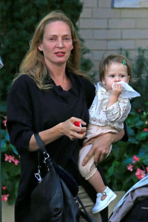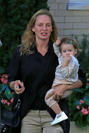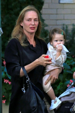 Ума Турман поймалась в объективы папарацци в Нью-Йорке с младшей дочерью на руках. Малышку, родившуюся в июле прошлого года, актриса и ее жених финансист Арпад Буссон по-домашнему кличут Луной, но полное ее имя, если помните, звучит куда длинней и помпезней – Розалинда Аруша Аркадина Алталуна Флоренс Турман-Буссон!