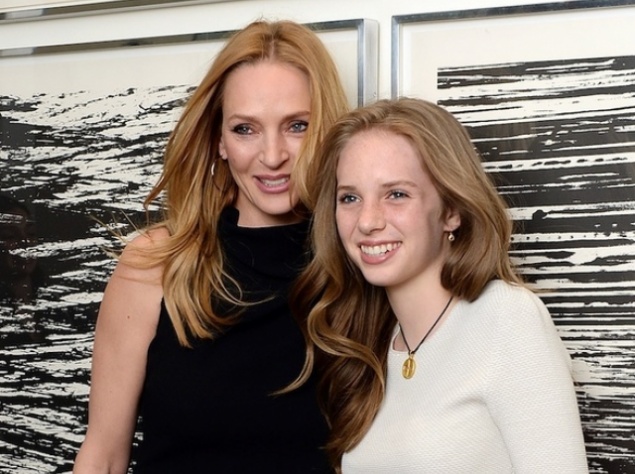 На мероприятии Ума появилась не одна, а в компании 20-летней дочери Майи. Для выхода в свет дамы выбрали элегантные образы — актриса примерила темно-фиолетовое платье с пайетками, черный плащ и сапоги, а ее дочь отдала предпочтение темно-синему брючному костюму, водолазке в полоску и босоножкам.