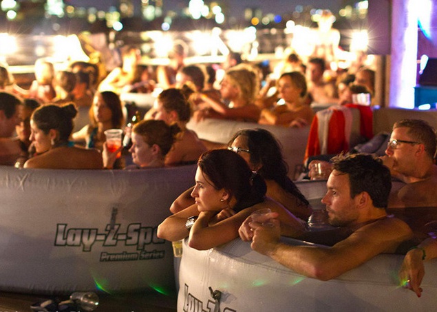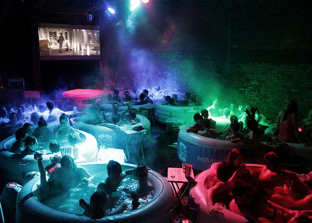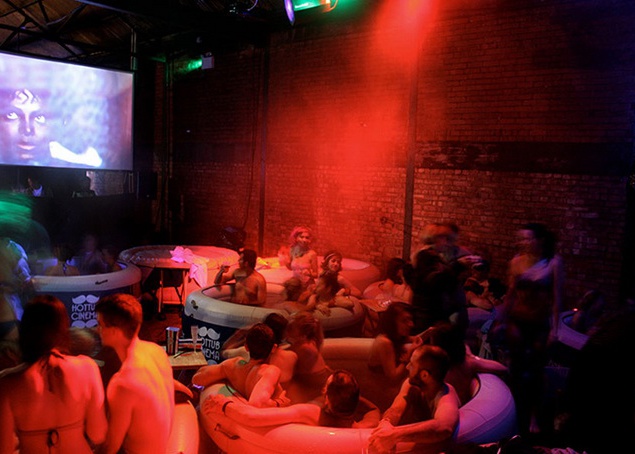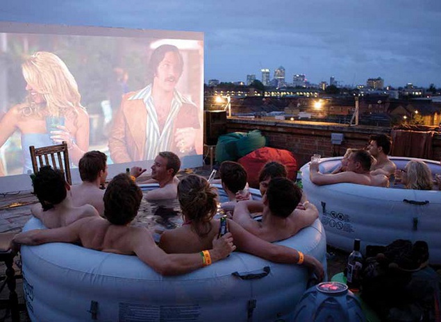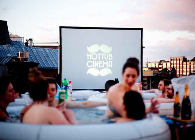 Вот такие вот кинотеатры есть в Великобритании. Называются они The Hot Tub Cinema и работают круглый год: летом и весной под открытым небом, а зимой и осенью в помещении. Причем вода в ванной все время горячая...