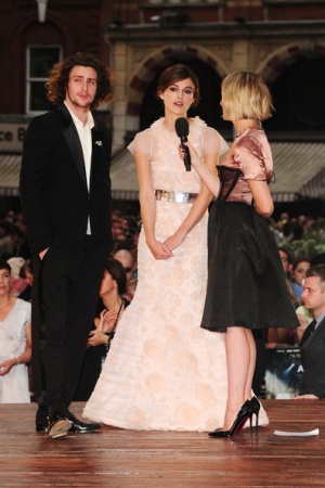 Кира Найтли (Анна), Джуд Лоу (Каренин) и Аарон Джонсон (Вронский) на лондонской премьере новой экранизации "Анны Карениной".