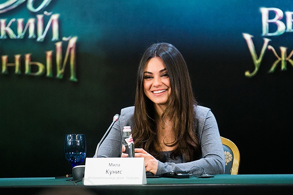 Несмотря на то, что Москва встретила голливудских звезд холодом и слякотью, они с радостью позировали перед объективами и отвечали на вопросы журналистов, одаривая поклонников и журналистов искренними улыбками. Мила Кунис, одетая в стильное серое платье с рюшем по центру и леопардовые лодочки, выглядела просто прекрасно – видно, что актриса активно взялась за свою фигуру и внешность.