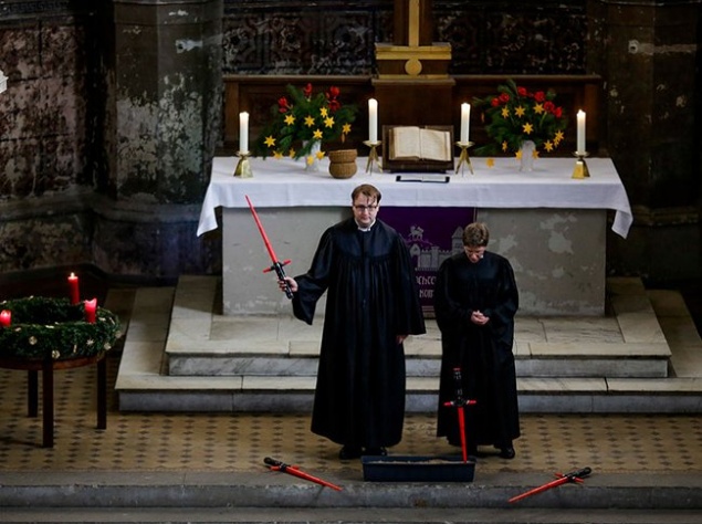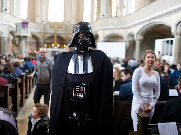 В Берлине была организована служба в тематике "Звездных войн". Вначале идея казалась странной, но в церковь пришло около 500 людей, а это вдвое больше, чем обычно. Ведь и правда, такими современными церкви не бывают.