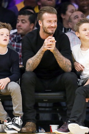 Семья Бекхэмов любит не только футбол. Знаменитый отец со своими сыновьями побывал на баскетбольном матче.