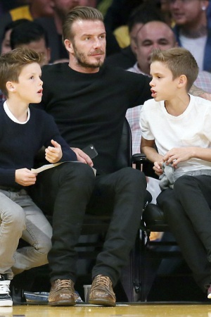 Вместе с Дэвидом в первом ряду за игрой наблюдали девятилетний Крус и двенадцатилетний Ромео.