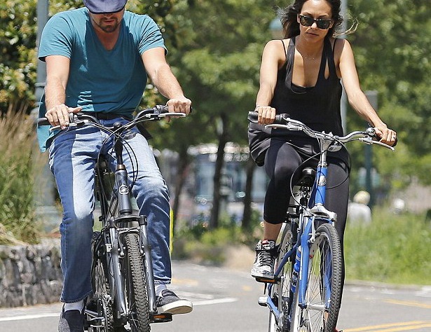 Рядом со звездой находилась девушка, но это была не его подруга-модель. Покрутить педали с Лео вышла его многолетняя подруга Эмили Мейс. Оба почему-то делали вид, что не очень желают попадаться в объективы папарацци. Девушка прятала глаза за большими солнцезащитными очками, а Ди Каприо скрывался за козырьком своей ставшей уже фирменной кепки.