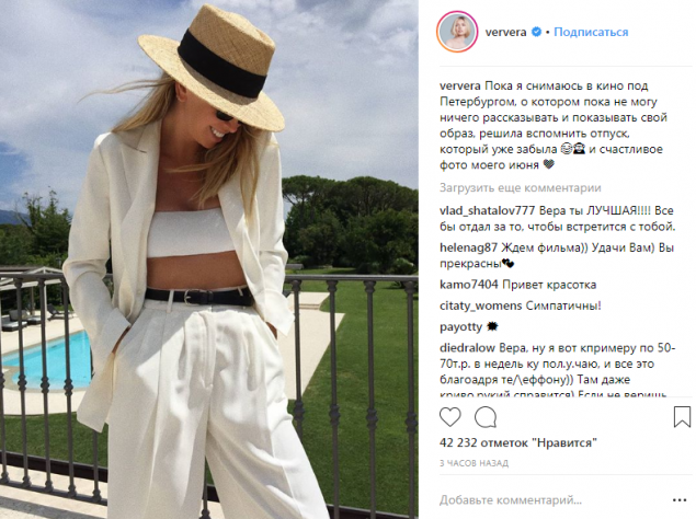 Вера Брежнева принимает участие в съемках фильма на территории Российской Федерации. Об этом факте сообщила сама певица на личной странице в Instagram.