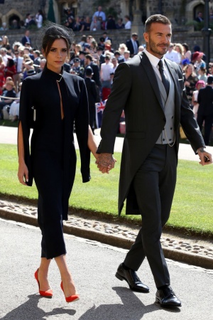 Дэвид и Виктория Бекхэм уже давно близко дружат с членами королевской семьи. Они присутствовали на свадьбе принца Уильяма и Кейт Миддлтон в 2011 году. Потому вовсе не удивительно, что 19 мая Виктория и Дэвид были замечены перед часовней святого Георга, чтобы порадоваться счастью принца Гарри.
