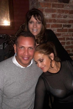 На фото Дженнифер Лопес в прозрачной черной кофте сидит рядом с Родригесом, а рядом с парой на снимке – знаменитая кинопродюсер и по совместительству их подруга Элейн Голдсмит-Томас. В тот вечер друзья праздновали день рождения Элейн.