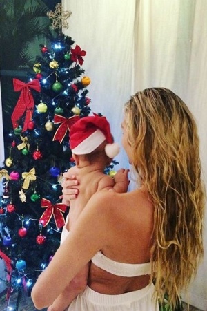 На днях, Свейпол впервые после родов поделилась с поклонниками снимком, на котором позирует в бикини. На фото отчетливо видно, что супремодель уже достигла былых идеальных форм, и ее малыш, к слову, тоже заметно подрос.