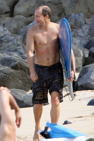Актер решил взять несколько уроков серфинга и делает заметные успехи в освоении водной стихии.