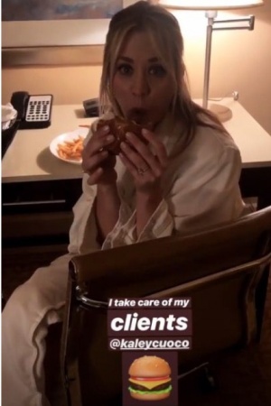 Звезда фильма "Очень плохие мамочки" (Bad Moms) Кристен Белл — претендентка на победу в номинации "Лучшая актриса комедийного или музыкального телесериала" за роль в сериале "В лучшем мире" (The Good Place) — развеяла миф о том, что звезды голодают перед важными мероприятиями. Актриса показала, как она вместе мужем Дэксом Шепардом (на заднем плане) обедает. А также запостила снимок своего роскошного платья и нескольких пар туфель. Видимо, селебрити долго не могла определиться с выбором.