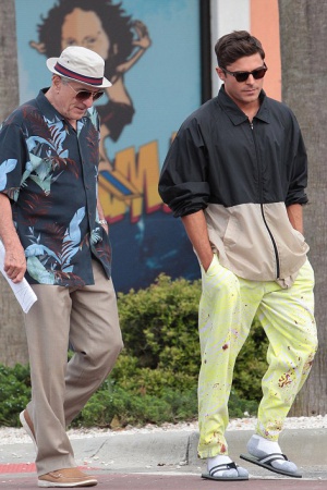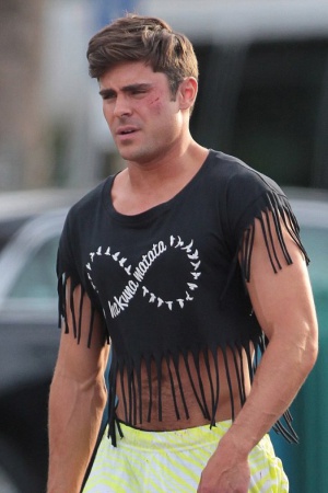 Милашка Зак Эфрон снимается в фильме "Грязный дедушка" c Робертом Де Ниро. Именно на съемочной площадке этой киноленты актер был замечен в странном прикиде. На Заке был короткий женский топ, явно испачканные яркие брюки. А еще симпатичную мордашку парня украшал порез. Видимо, фильм будет интересным. Ждем.