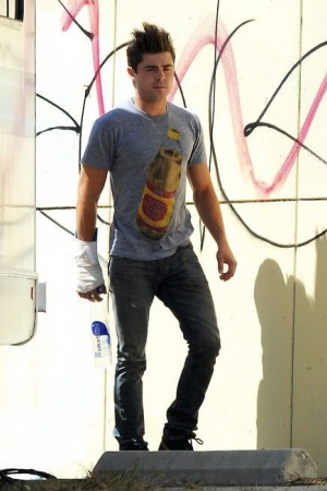 Травму правой руки 25-летний актер получил во время падения. Доктор, срочно прибывший на съемки, осмотрел повреждения запястья и велел наложить гипс. Пока неизвестно, как долго, Заку придется ограничивать нагрузки на правую руку, но неприятный инцидент не помешал ему продолжить работу над фильмом и посетить церемонию вручения кинонаград MTV. В фильме "Шантрапа" актер играет парня из студенческого братства, чьи выходки влияют на семейную жизнь его соседей. В актерском составе кроме Зака Эфрона зявлены также Дэйв Франко, Роуз Бирн и Сет Роген.