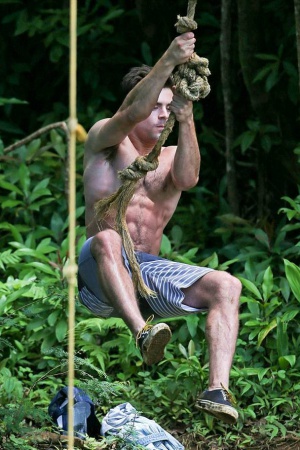 Так, в понедельник он со своими коллегами по фильму Адамом Дивайн и Обри Плаза был замечен во время прыжков с помощью каната в водоем. Надо заметить, что 27-летний актер был топлесс и продемонстрировал нам свою отличную фигуру.