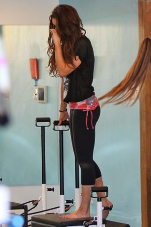 Именно поэтому красавица немало времени посвящает спорту. И сегодня это был пилатес.