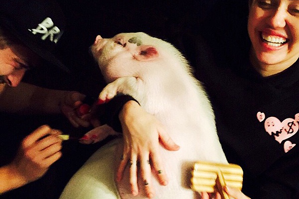 Майли Сайрус в очередной раз вызвала критику общественности - скандальная звезда выложила в сеть Instagram снимки своей карликовой домашней свиньи с ярко-красным "маникюром". Защитники животных обвинили артистку в глупости и жестокости.