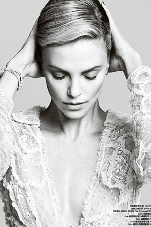 И если обычно стилисты журналов выбирает для съемки какие-нибудь живописные интерьеры или пейзажи, то для именитой блондинки задача была усложнена - она позировала в студии на обычном белом фоне. Однако даже в таких условиях Шарлиз не растерялась и вместе с автором сета создала поистине завораживающие кадры.