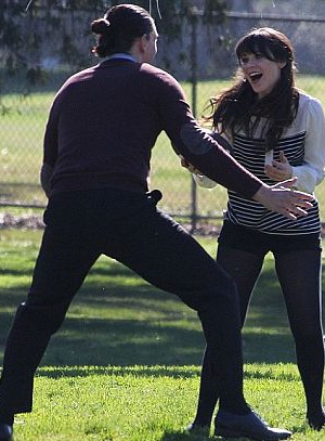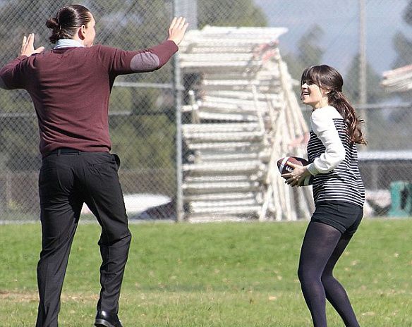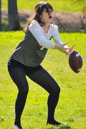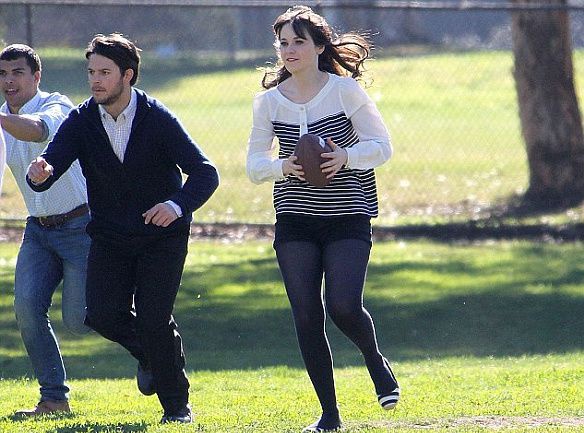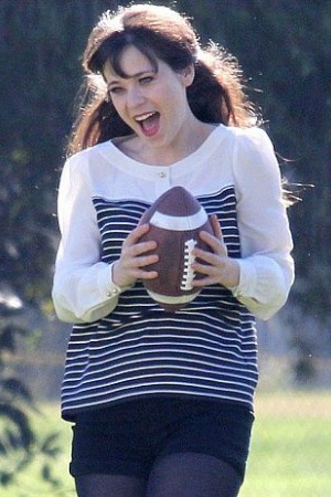 Зои Дешанель всегда выглядит так, будто ей чужды развлечения, приносящие радость "простым смертным". Поэтому весьма удивительно видеть знаменитую актрису на поле для американского футбола, лихо гоняющую с мячом.