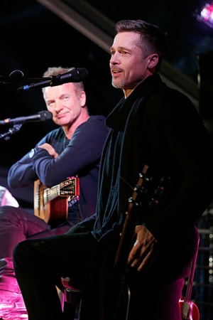 Несмотря на непростую ситуацию в семье, Брэд на прошедшем мероприятии выглядел расслабленным и отдохнувшим. Звезда фильма "Мистер и миссис Смит" приветливо улыбался собравшимся, общался со своими звездными друзьями и даже вышел на сцену вместе со Стингом.