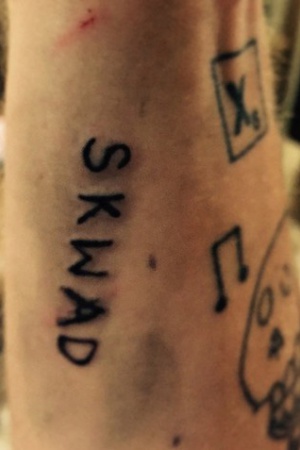 В числе желающих получить памятную тату оказались актеры Юэль Киннаман и Джай Кортни, а также режиссер картины Дэвид Эйр. Пока Уилл Смит рисовал на руке Киннамана слово Skwad (В оригинале название "Отряда самоубийц" звучит как Suicide Squad), Марго сделала аналогичные татуировки Кортни и Эйру. Результатами вся компания поделилась в своих социальных сетях.