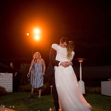 Судя по многочисленным снимкам в соцсети, свадьба пела и плясала до ночи: гости по очереди подходили к микрофону, и невеста тоже не отставала от них в этом деле.