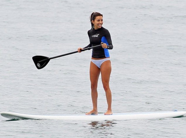 Теперь не редко в глянцевых журналах можно увидеть фотографии звезд в океане, а порой и на доске в океане и даже на доске с веслом.