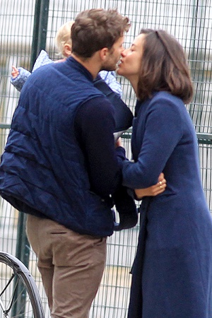 Не можем не отметить, что повседневные наряды обоих родителей выглядят отлично, да к тому же выдержаны в одной цветовой гамме - как и положено влюбленной паре: стеганый жилет Джейми сочетается с длинным плащом Амелии и курткой дочки.