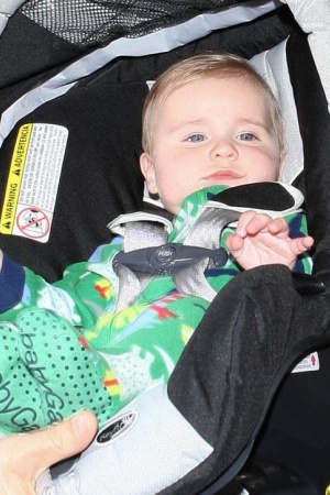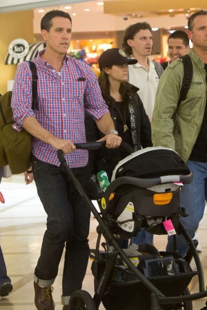 Папарацци сфотографировали знаменитую кинозвезду, ее супруга Джима Тота и семимесячного сына Теннесси в лос-анджелесском аэропорту.
