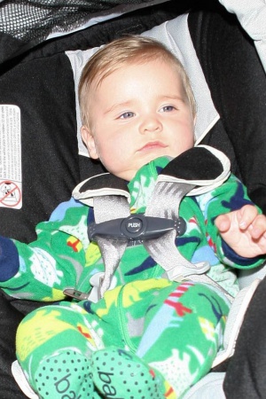 В причудливом зеленом человечке от Gap малыш спокойно позировал папарацци, ни разу не заплакав – серьезное лицо Теннесси умилило даже папарацци!