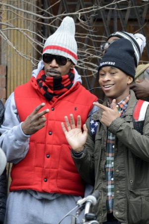 Джейми Фокс попался в объективы морозным деньком в нью-йоркском Сохо. Актер шел с какой-то дамой и старательно прятал лицо за красным шарфом. Может, конечно, просто мерз, но папарацци уверены: скрывался товарищ! Впрочем, ему это помогло мало: и фотографы заметили, и фанаты. Пришлось открывать личико и позировать с поклонниками.
