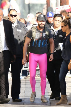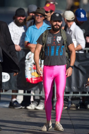 Зрелище довольно любопытное: голливудский актер Шайа Лабаф вышел на улицу в обтягивающих блестящих штанах. Да каких! В ярко-розовых лосинах…