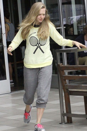 При этом девушка предпочла не наряжаться и не краситься. На лице Аманды не было ни грамма косметики, а одета она была очень просто – в желтый свитер с изображением ракеток и трикотажные бриджи с кроссовками.