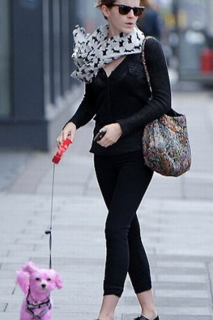 Звезда фильмов про Гарри Поттера покрасила своего песика, тенерифского бишона, в цвет розовой жвачки. Годовалая самочка по кличке Дарси, конечно, девушка, но ведь не каждая девушка любит такой яркий розовый.