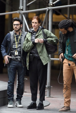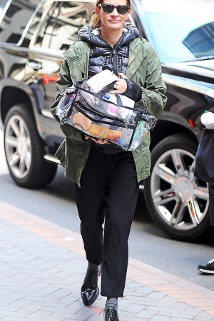 На днях звезда "Красотки" появилась на публике совершенно без макияжа, в черных брюках, куртке и солнцезащитных очках. Несмотря на столь обыденный наряд, Джулия по-прежнему выглядела великолепно, демонстрируя естественную красоту и ослепительную улыбку.