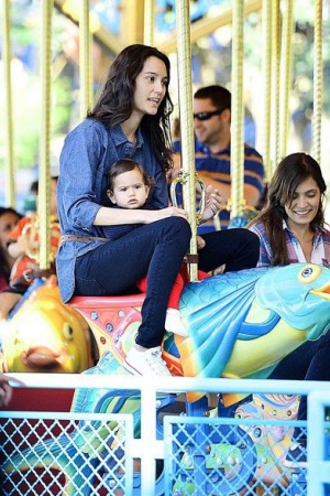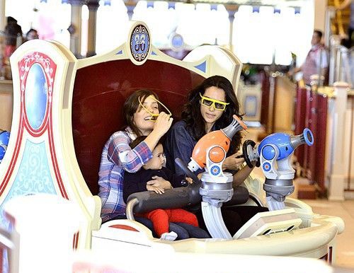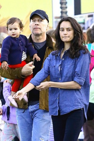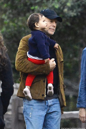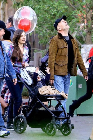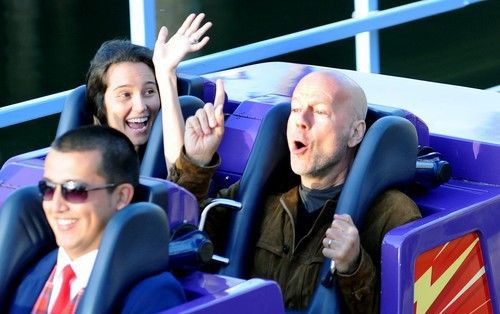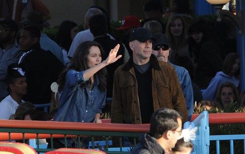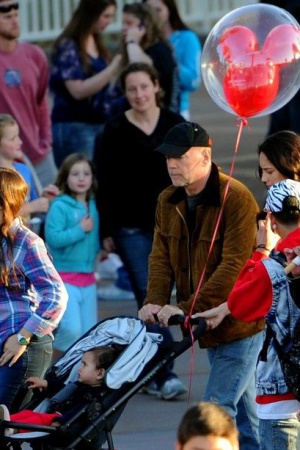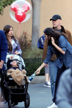 Брюс Уиллис с женой Эммой и годовалой дочкой Мэбел Рэй провел день в парке аттракционов Disney.