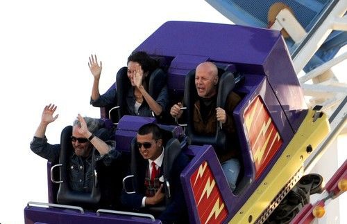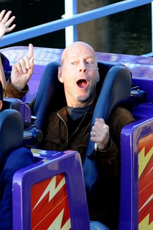 Доказывая имидж "крепкого орешка", актер не побоялся прокатиться на Американских горках.
