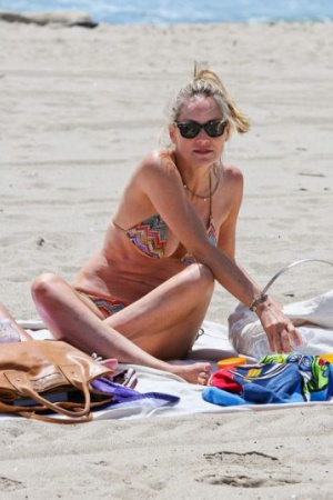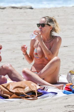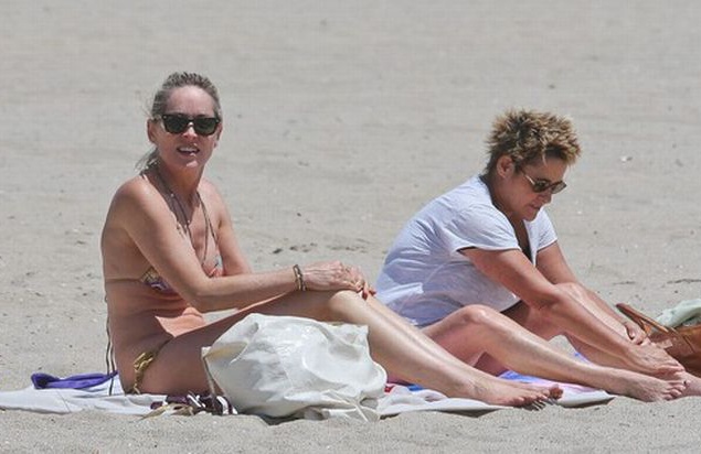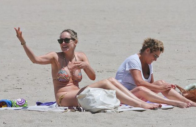 На днях Шэрон Стоун была замечена на пляже в Калифорнии. Звезда принимала солнечные ванны в компании подруги.