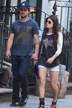 21-летний актер Тэйлор Лотнер сейчас снимается в боевике "Трейсеры", где его партнершей стала 27-летняя канадская актриса Мари Авгеропулос.