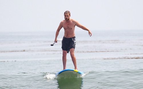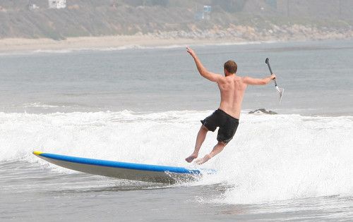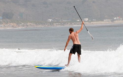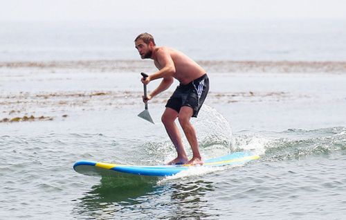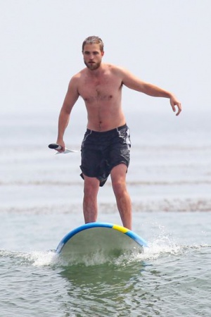 Актер занимался серфингом и старался не обращать внимание на папарацци.