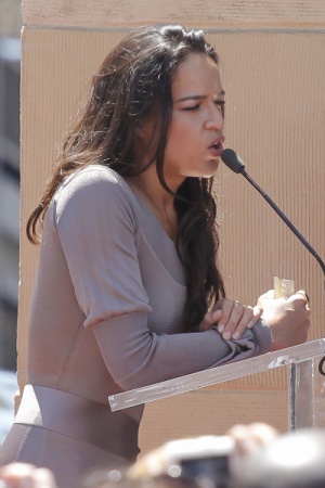 Поздравить коллегу в этот знаменательный пришла также и его напарница по нескольким "Форсажам" Мишель Родригес.