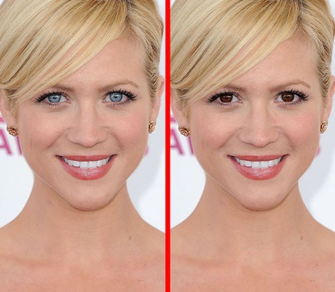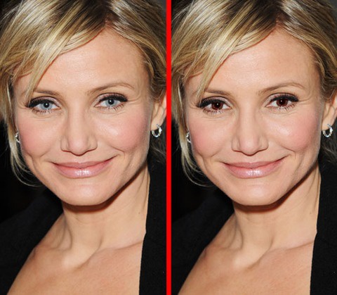 Кудесники Фотошопа сделали, вроде бы, вещь совсем невинную – перекрасили некоторым звездам глаза в карий цвет. Казалось бы – мелочь, а как все-таки это меняет внешность!