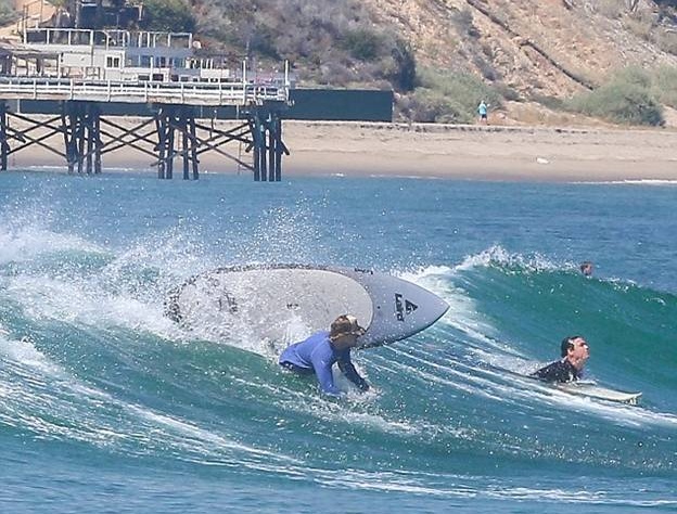 Воскресным утром на пляже в Малибу высадился звездный десант любителей серфинга. Его посетители могли наблюдать за катанием на доске Шона Пенна, Джерарда Батлера и Оуэна Уилсона.