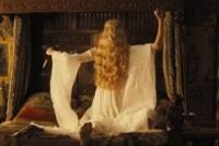 Что касается Кристен Стюарт, то она не совсем удачно вписывалась в образ милой и красивой. Отважной, доброй, справедливой, но никак не красивой. Ее простоватая внешность и почти постоянно одинаковое выражение лица совсем не вяжется с ее героиней. Белоснежка в данной картине навряд ли смогла бы состязаться в привлекательности внешней и по мощности духа с Королевой Шарлиз Терон.