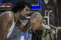Вот главный герой Макс Да Коста (Деймон), он бывший преступник, который вроде бы как раскаялся и пытается жить честно, вкалывая с утра до ночи на заводе по производству охранных дроидов. Вот, так называемый главный злодей, вернее главная злодейка мисс Делакур (Фостер), министр обороны «Элизиума», жуткая стерва, страдающая непомерными амбициями. Есть другие герои рангом пониже: Фрей (Алисе Брага) – любимая девушка Макса; М. Крюгер (Шарлто Копли) – наемный убийца, агент Делакур на Земле; Джон Карлайл (Уильям Фихтнер) – директор завода на котором трудится Макс; Паук (Вагнер Моура) – преступник, наладивший незаконную переправку людей на «Элизиум», друг Макса.