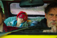 Змучений батько, приваблива дівчина, маніакально налаштований син і "мумія" ретельно прив'язані до заднього сидіння машини.