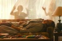 Так была няня или это галлюцинация?! Если была, то почему она истощена и почему потом вспоминает, как в баре сидит одна и на велосипеде едет одна? А если галлюцинация, то почему муж говорит, что она согласилась на няню и она к ним приходила?