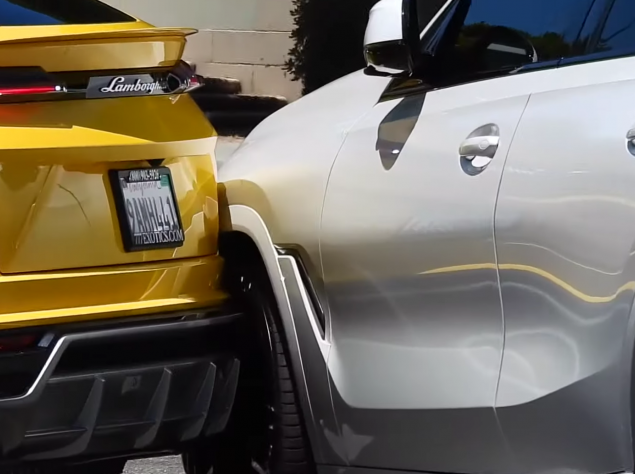 Задній бампер Lamborghini з боку пасажира торкнувся переднього колеса BMW і, можливо, крила. Син актора згодом вийшов з авто і підійшов до кузова, щоб оглянути можливі пошкодження.