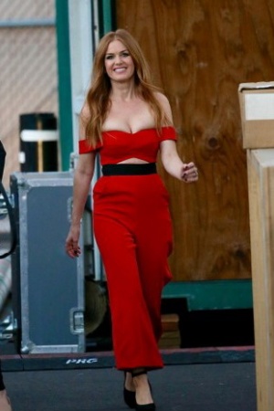 40-річна Айла Фішер виглядала чудово в червоних штанях та з глибоким декольте. Мати трьох дітей підкреслила стрункість за допомогою темного пояса на талії.
