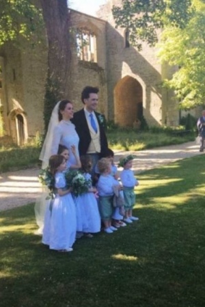 Фелисити і Чарльз Гард провели закриту церемонію одруження в суботу, в 30 червня, в замку Садели, графство Глостершир. Весільним вбранням нареченої став "бюджетний наряд" - елегантна біла сукня з довгими рукавами.