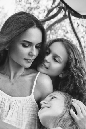 У зніманнях брали участь доньки актриси Поліна і Зоя, і її мама. Всі вони були одягнені у білі сукні. Позували з розпущеним волоссям і босоніж. Образи вийшли дуже ніжними, а світлини милими.